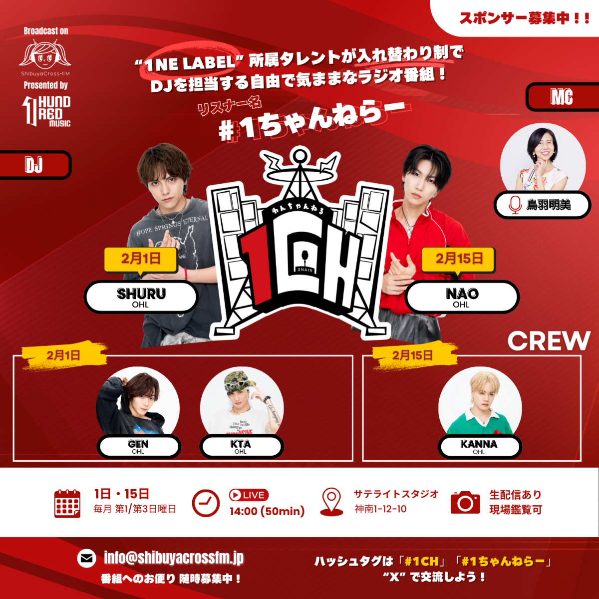 観覧:渋谷クロスFMサテライトスタジオにて生放送、無料観覧可能